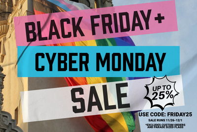 The 11 Stripe Rainbow Pride Flag, also called the Rainbow Flag for Trans and POC, with hand-sewn nylon stripes, finished with a canvas header, and brass grommets. Each flag is sewn with reinforced corners and can be flown outside or displayed proudly indoors.